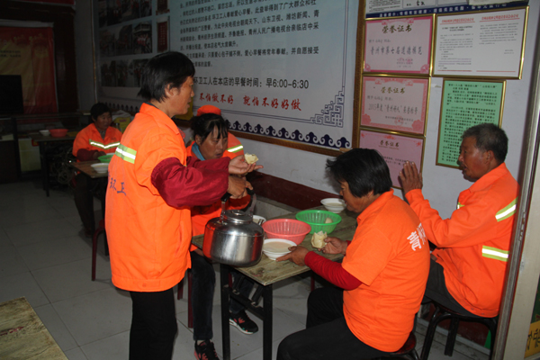 于是,在眾多志愿者的幫助下,青州市第一家環衛工愛心就餐點在石福軍的包子鋪正式掛牌,到現在已經是整整兩年的時間了。每天早上6:00—6:30,包子鋪里有兩張餐桌是空著的,環衛工人們就會如約而至,就像回到了自己家里一樣。