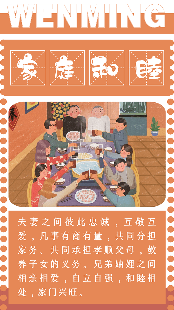 家庭和睦則社會安定,家庭幸福則社會祥和,家庭文明則社會文明。讓我們共同努力,重視家庭文明建設,為祖國富強、為社會發展貢獻力量。