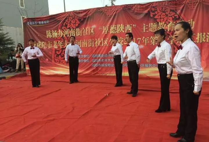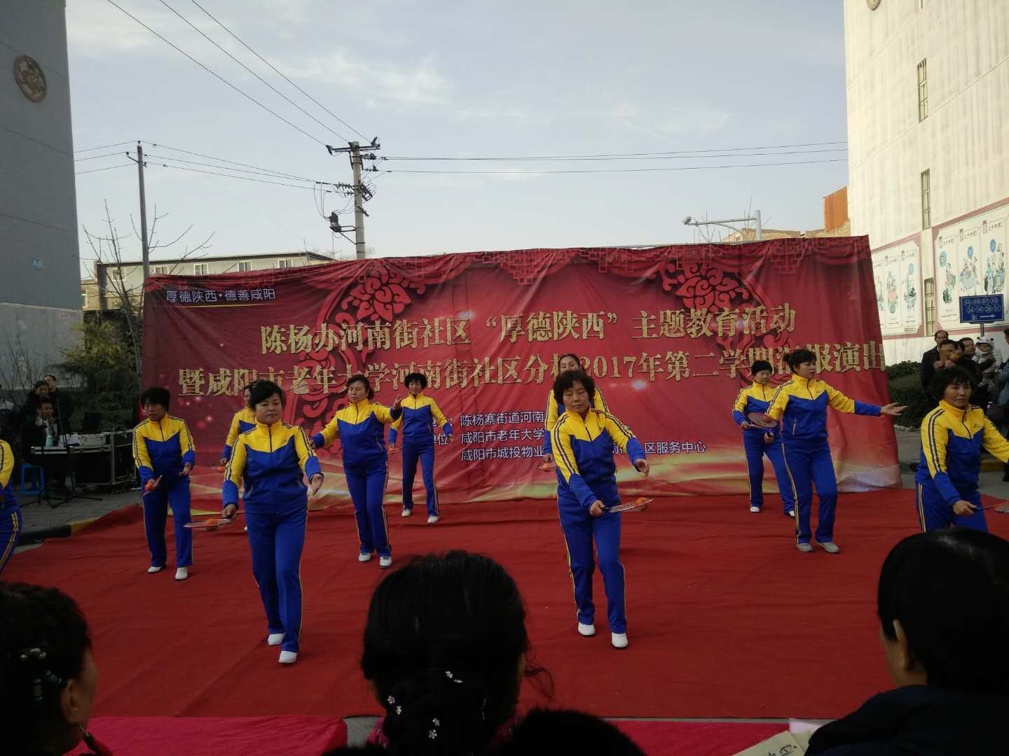 12月26日,城投物業聯合河南街社區開展“厚德陜西”主題教育活動暨咸陽市老年大學河南街社區分校2017年第二學期匯報演出活動在河南街小區舉行,來自河南街社區、市老年大學代表共計二百余人,為活動貢獻出了精彩紛呈的文藝表演。