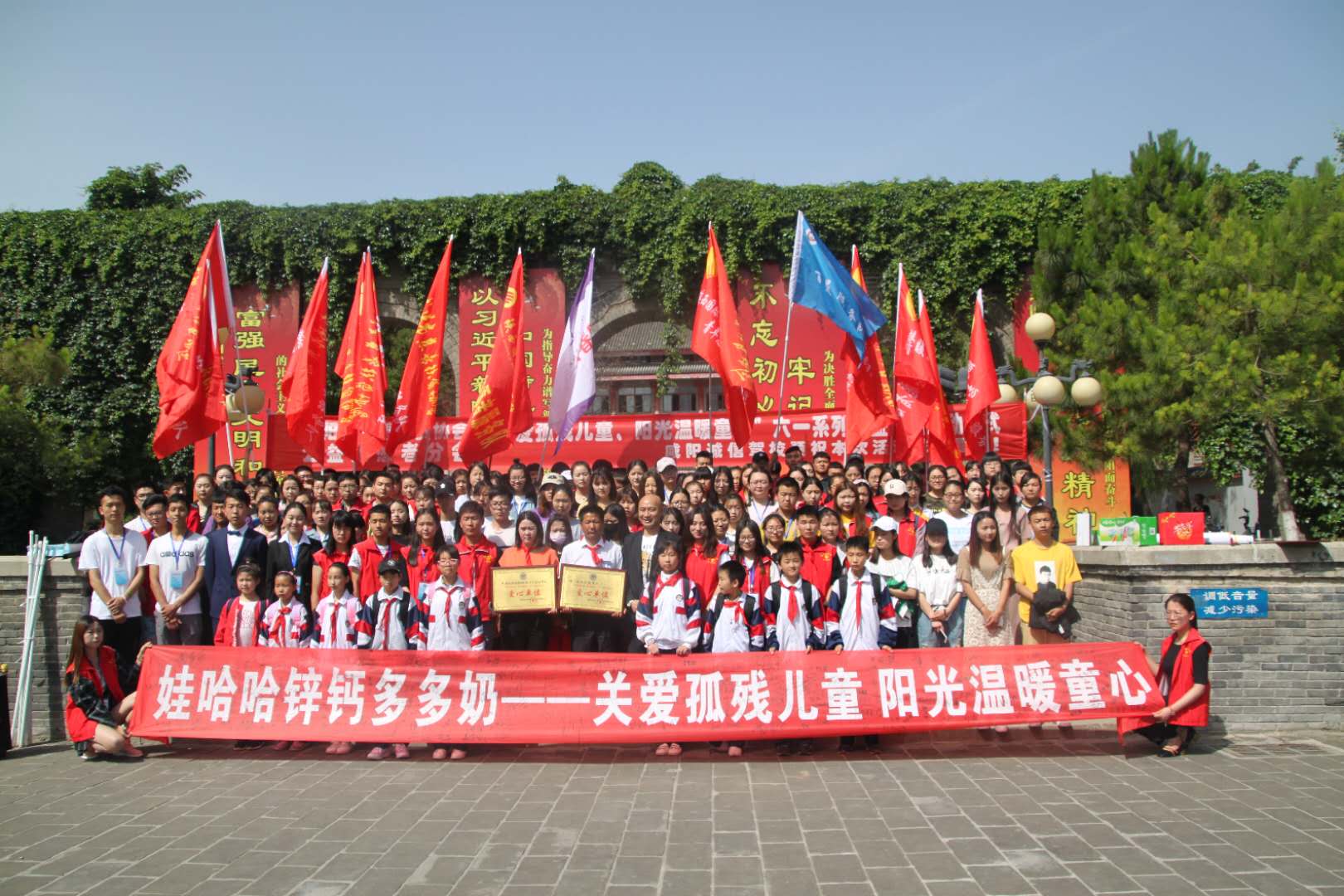 2018年5月12日上午9時,在中華廣場上,城投物業(yè)志愿者服務(wù)隊聯(lián)合咸陽市慈善扶貧協(xié)會公益志愿者分會舉辦了以“關(guān)愛孤殘兒童,陽光溫暖童心”為主題的六一系列公益活動啟動儀式;本次活動來自全市二十七支志愿者服務(wù)隊,共計300余人參與。