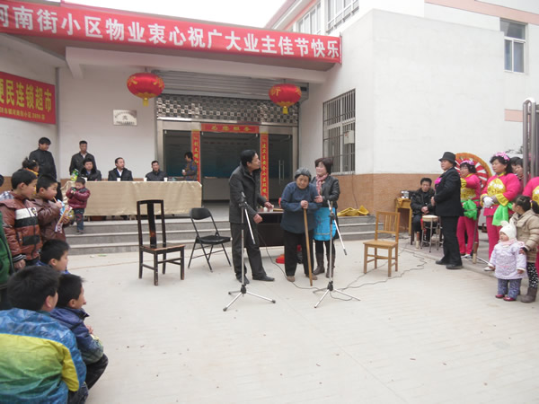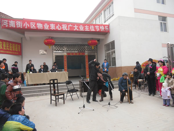 。ㄐ畔T:李建華)農歷正月十三(2月4日),河南街小區鑼鼓喧天,彩旗招展,熱鬧非凡,呈現出一片祥和的節日氣氛。 上午10時聯歡會準時開演,小區業主自編自演的腰鼓舞、扇子舞、拉開了這次活動的序幕,他們以優美、歡暢的舞姿,以矯健穩定的舞步,揮舞著手中的彩帶與鼓錘,生龍活虎,時伏時起。精彩的表演,贏得了在場觀眾的陣陣掌聲,尤其是小品《遲到的紅梅》將聯誼會逐漸推向了高潮,詼諧幽默地方話臺詞、真情再現的感情留露,深深的感染著在場的每一位觀眾。同時也讓我們清醒的認識到,尊老愛幼的傳統美德,無論在什么時候,我們都應該繼承與發揚,理解與關愛自己身邊的長輩與老人。 通過這次聯誼會,不但拉近與改善了物業與業主的關系,也活躍了小區精神文化生活,同時也體現了物業與小區業主都是一家人的魚水之情,鼓舞了物業辦全體員工繼續搞好小區各項工作的信心。