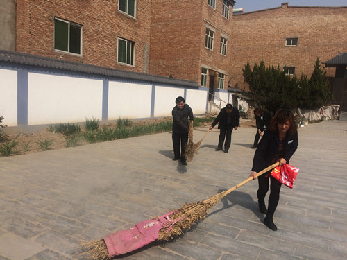 早上九時許,志愿者們排著整齊的隊伍來到了烈士陵園。在工作人員的主持下,志愿者們先向長眠于此的烈士敬獻了花環,隨后默哀一分鐘,以示對烈士最崇高的敬意。接著志愿者們跟隨工作人員的指引環繞英雄紀念碑一周,瞻仰咸陽狙擊戰的革命事跡,緬懷革命先烈的豐功偉績。最后,志愿者們分工協作,對陵園進行了徹底的衛生清潔。