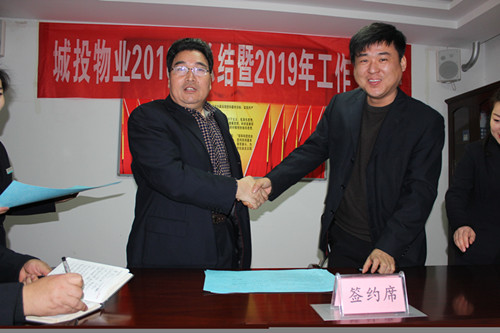會議表彰了物業公司2018年度先進班組和先進個人,并完成了2019年度《經營目標責任書》和《安全目標責任書》的簽訂。