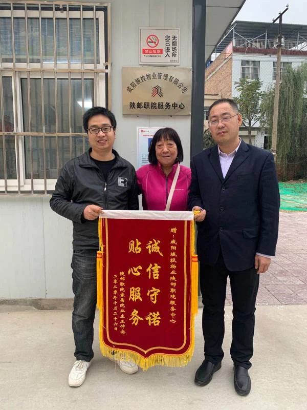 王阿姨是陜郵職院家屬院3號樓的業主。子女因為工作忙碌很少在身邊,購買水電、維修等瑣碎事,都是物業人員手把手教老人如何在手機上操作。平時還幫助老人解決一些日常瑣事,老人為了表達內心的感激之情,送來了錦旗。