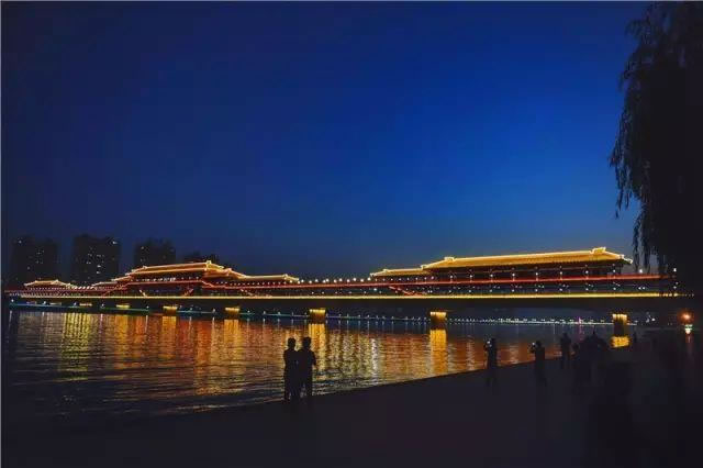 北起渭陽路,南至渭河南岸,橫跨渭河,連通世紀(jì)大道的“古渡廊橋”,名字源自關(guān)中八景之“咸陽古渡”,全長(zhǎng)748米,寬14米,是全國(guó)首座秦建筑風(fēng)格、雙層人行景觀廊橋,自建成以來立即成為我市地標(biāo)性文化景觀之一。[ 詳細(xì)內(nèi)容